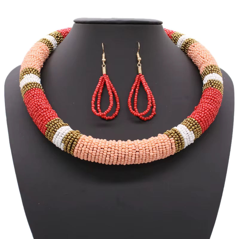Ethnic Style Bohemia Necklace Earrings Fashion Jewelry Set